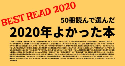 みなさんこんにちは、櫻井です。 今宵もやってまいりました、2020BEST READのコーナーです! 今年はどの本がランキング入りしたのでしょうか!! ---【少しだけ自己紹介】--- 僕はWEBエンジニアで今は起業しようとプロダクトの検証中です。 今年は会社を辞め…